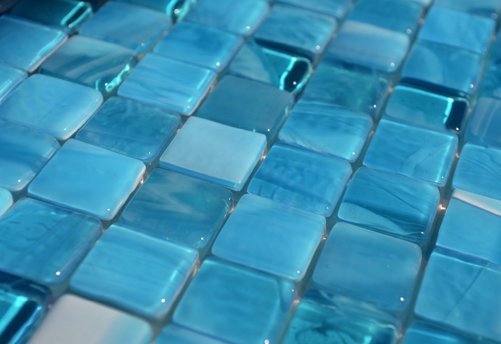 ハンドクラフトの味わいが魅力的なヴェネチアングラスのタイル。波のようにゆらぐ光の反射を表現しています。