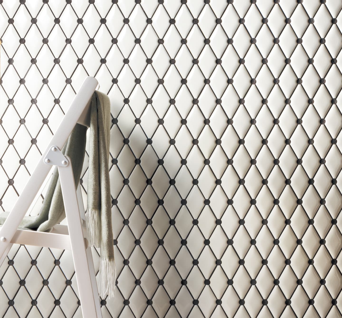 ひし形を基調としたこちらのタイルは角が丸みを帯びていて、キルティングのようなタイルです。スタイリッシュになりすぎず、上品な雰囲気を醸し出してくれます。