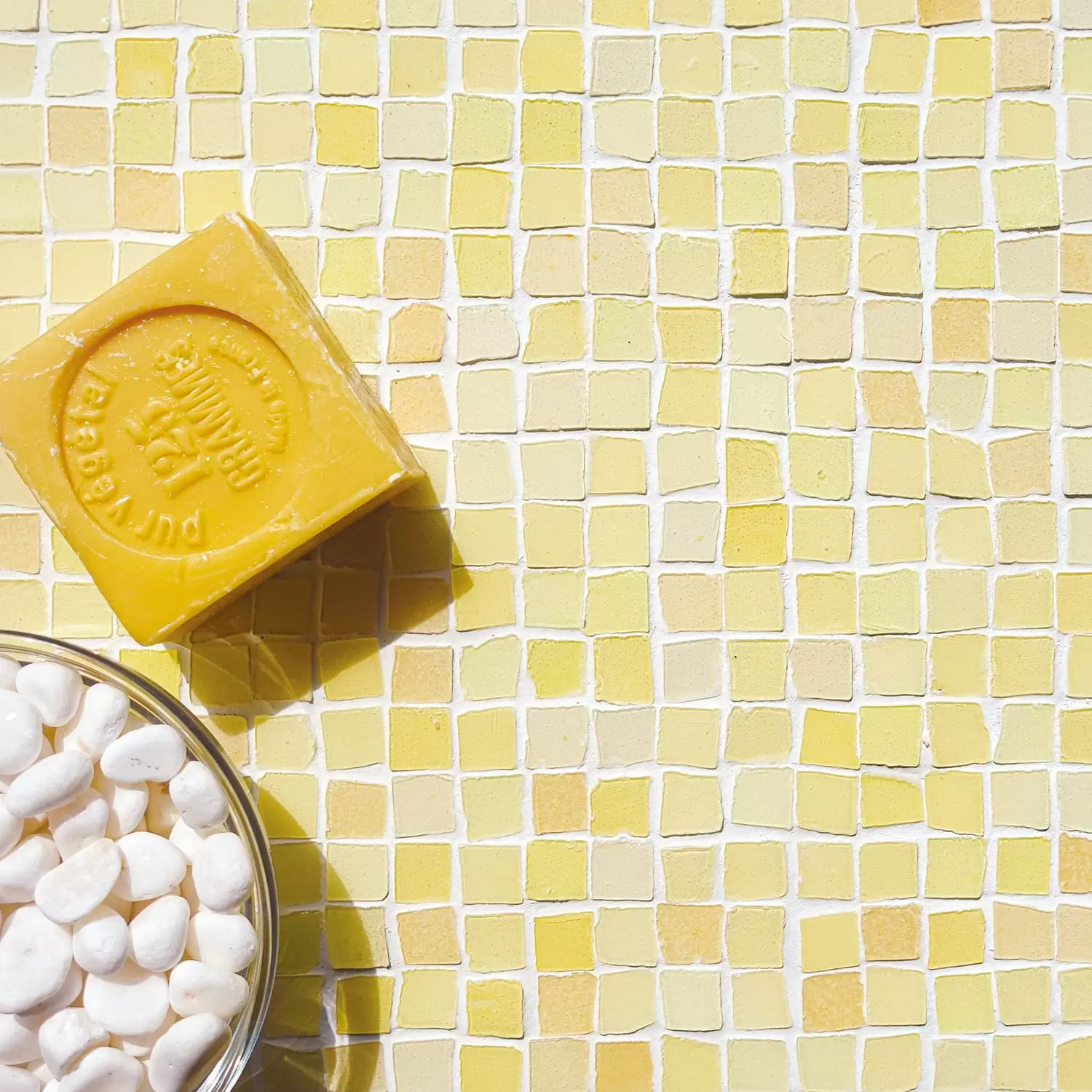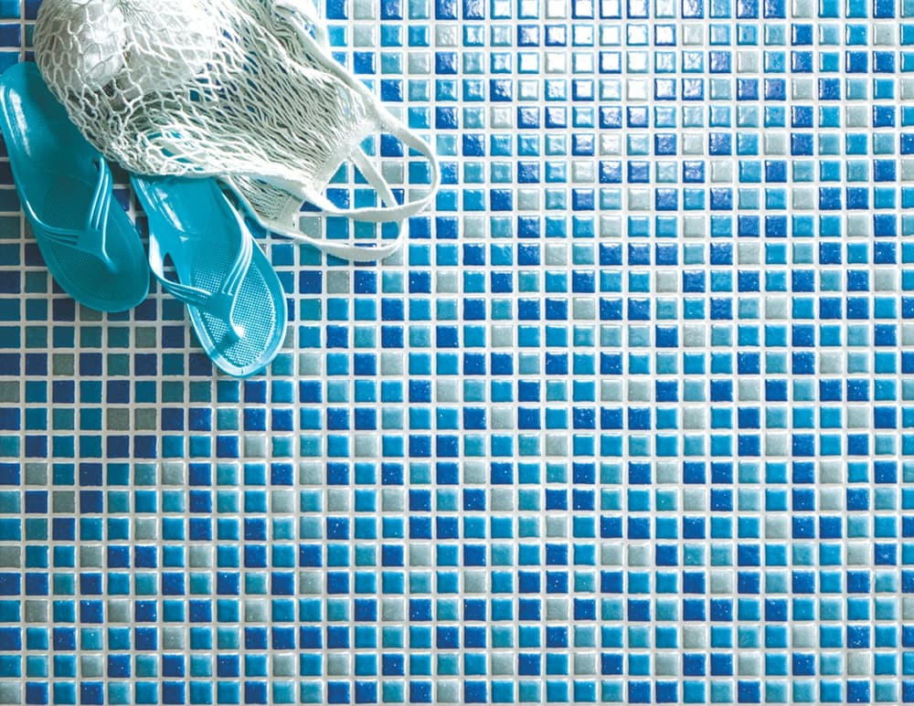 イタリアにあるガラス製造で有名なムラーノ島の職人さんが手作りで作ったタイルです。「マーレ」はイタリア語で「海」という意味で、透き通る青いタイルが海を表現しています。